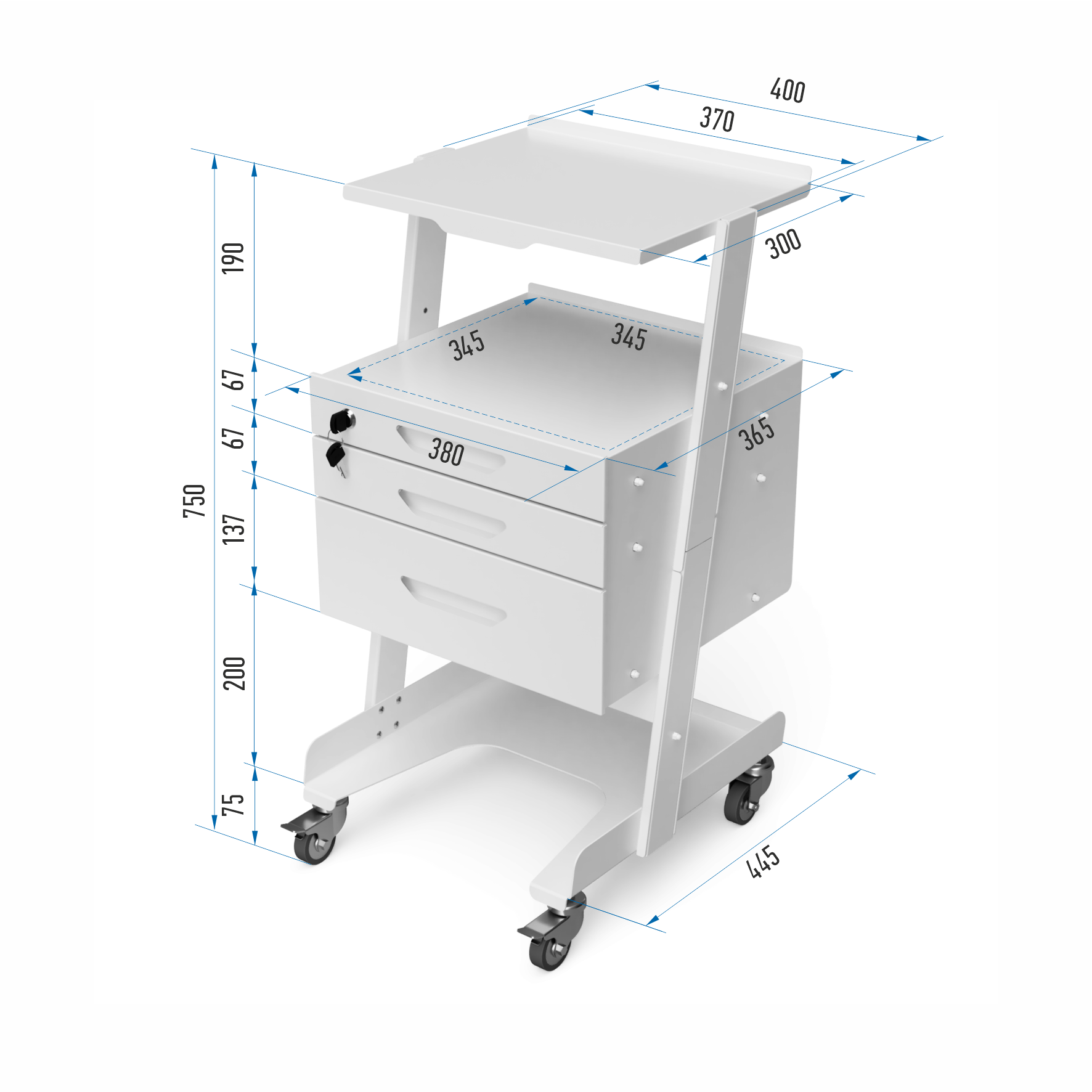 - сверху удобная приборная полка для оборудования весом до 10 кг;