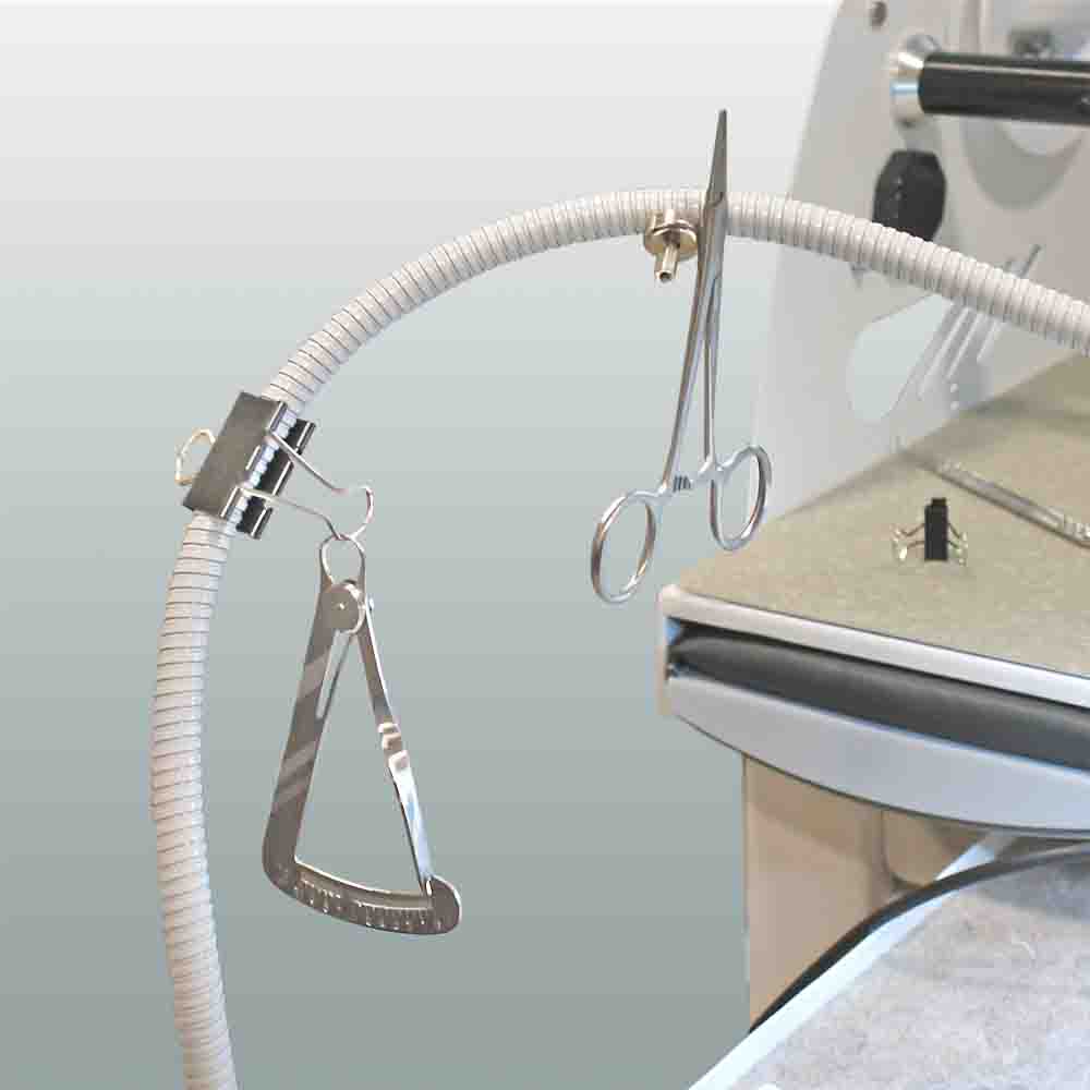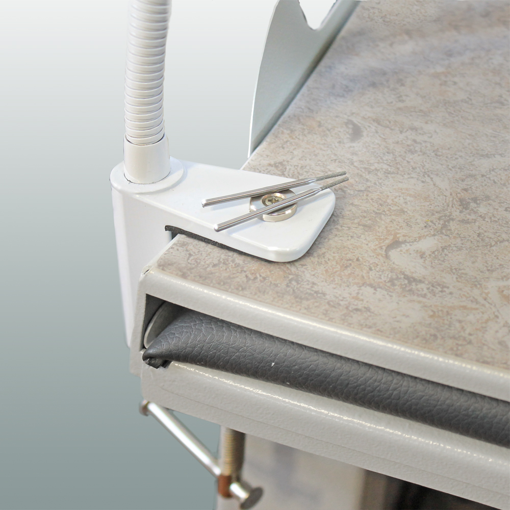 - зажим-крючок на гибком кронштейне: удобен для навешивания инструментов, например, пинцета или микрометра;