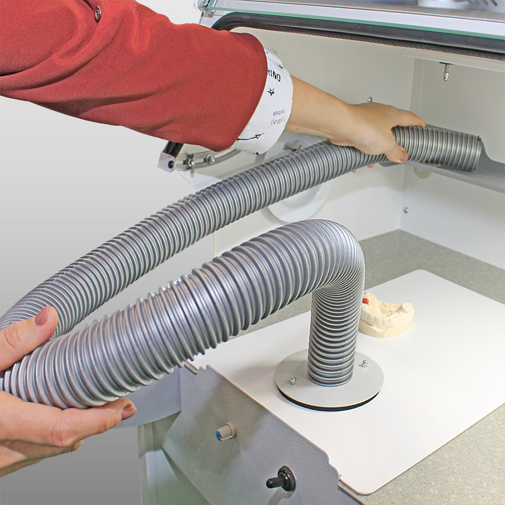 Для комфортной уборки рабочего места, для соединения встроенных вытяжных каналов с другими устройствами, требующими вытяжки
