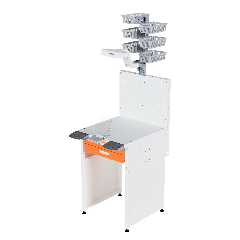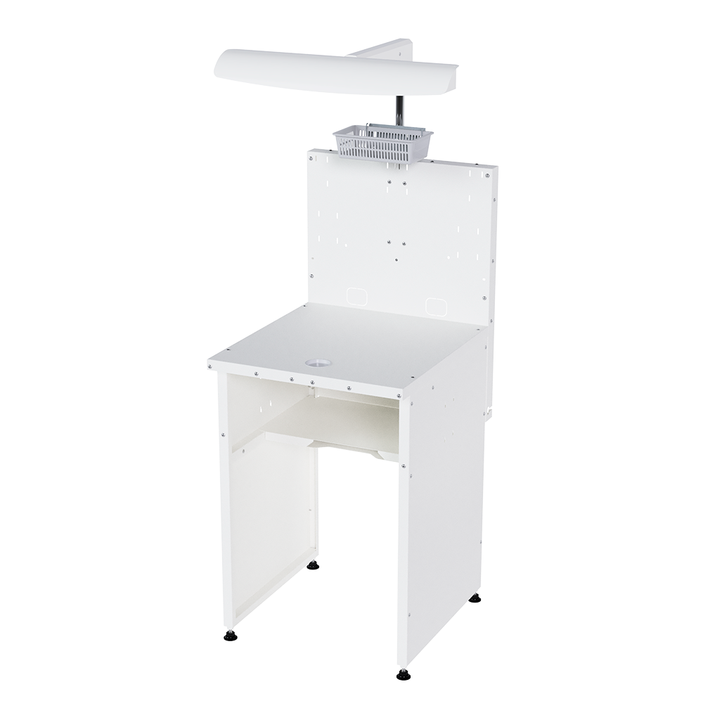 Универсальный зуботехнический стол для организации как общих рабочих мест (обработка моделей и протезов, литье, разогрев опок, пайка, сварка, полимеризация, пескоструйная обработка, полировка и пр.), так и индивидуальных рабочих мест зубного техника
