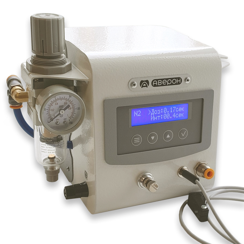 - Хранение до 9 программ с заданными параметрами: время дозирования, время следования импульсов