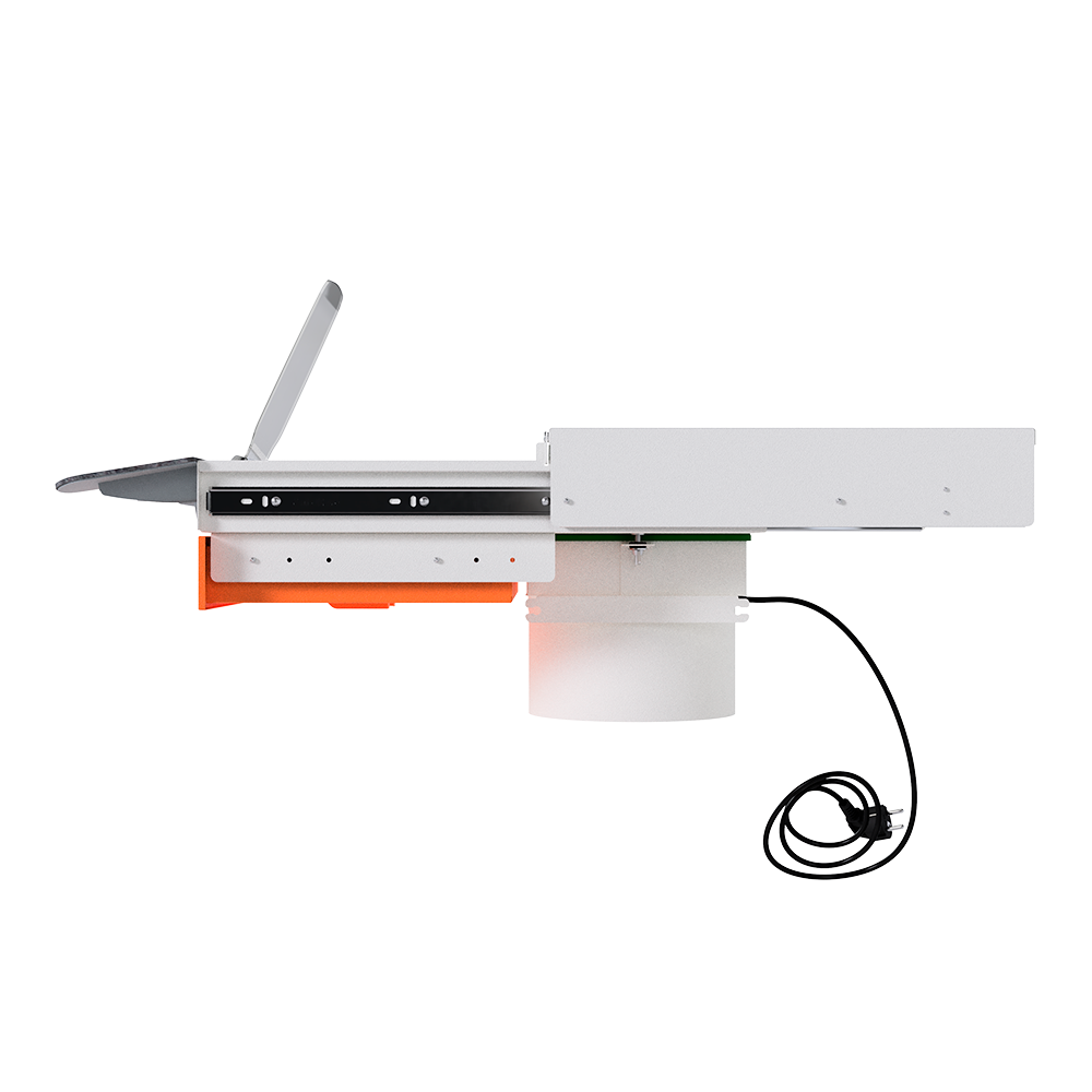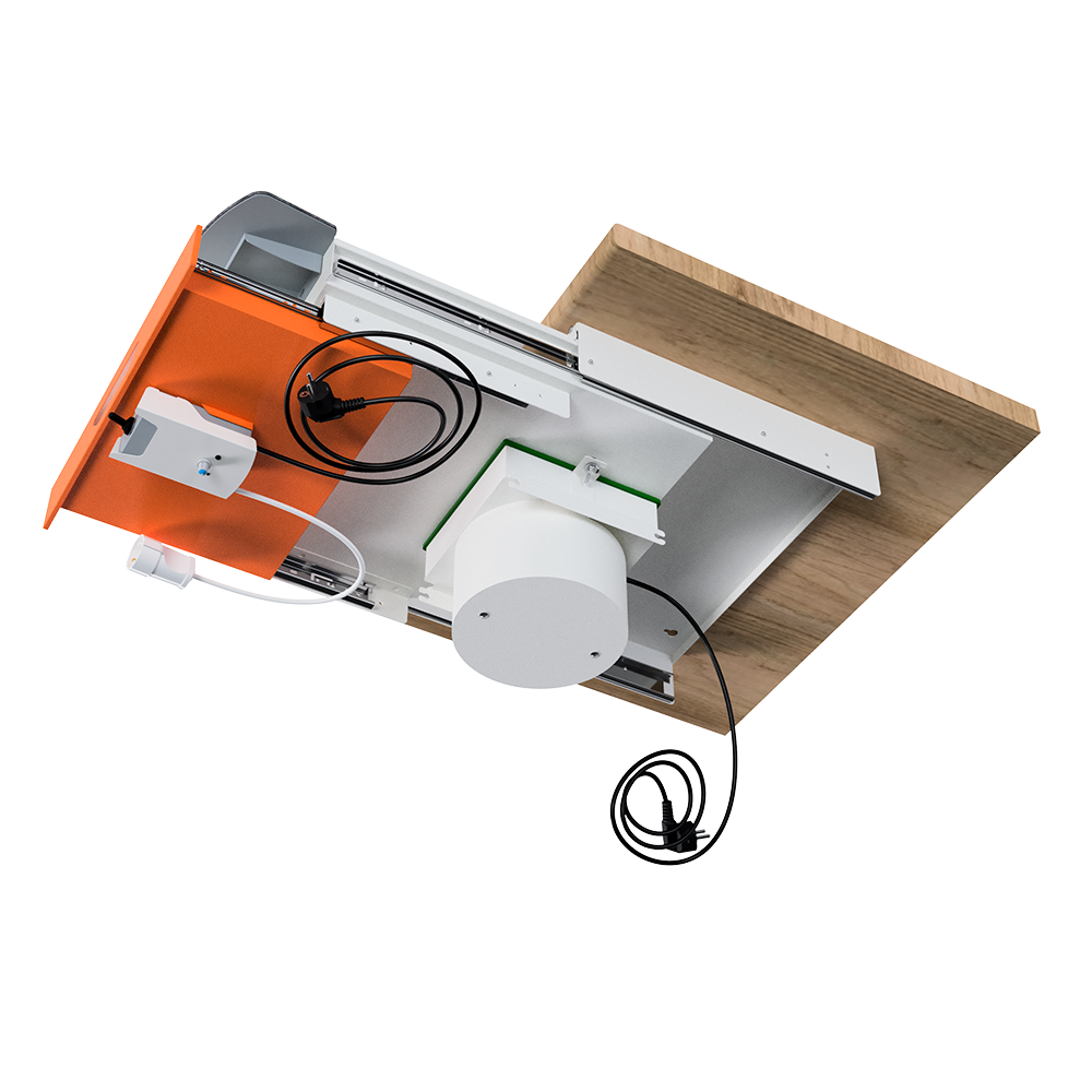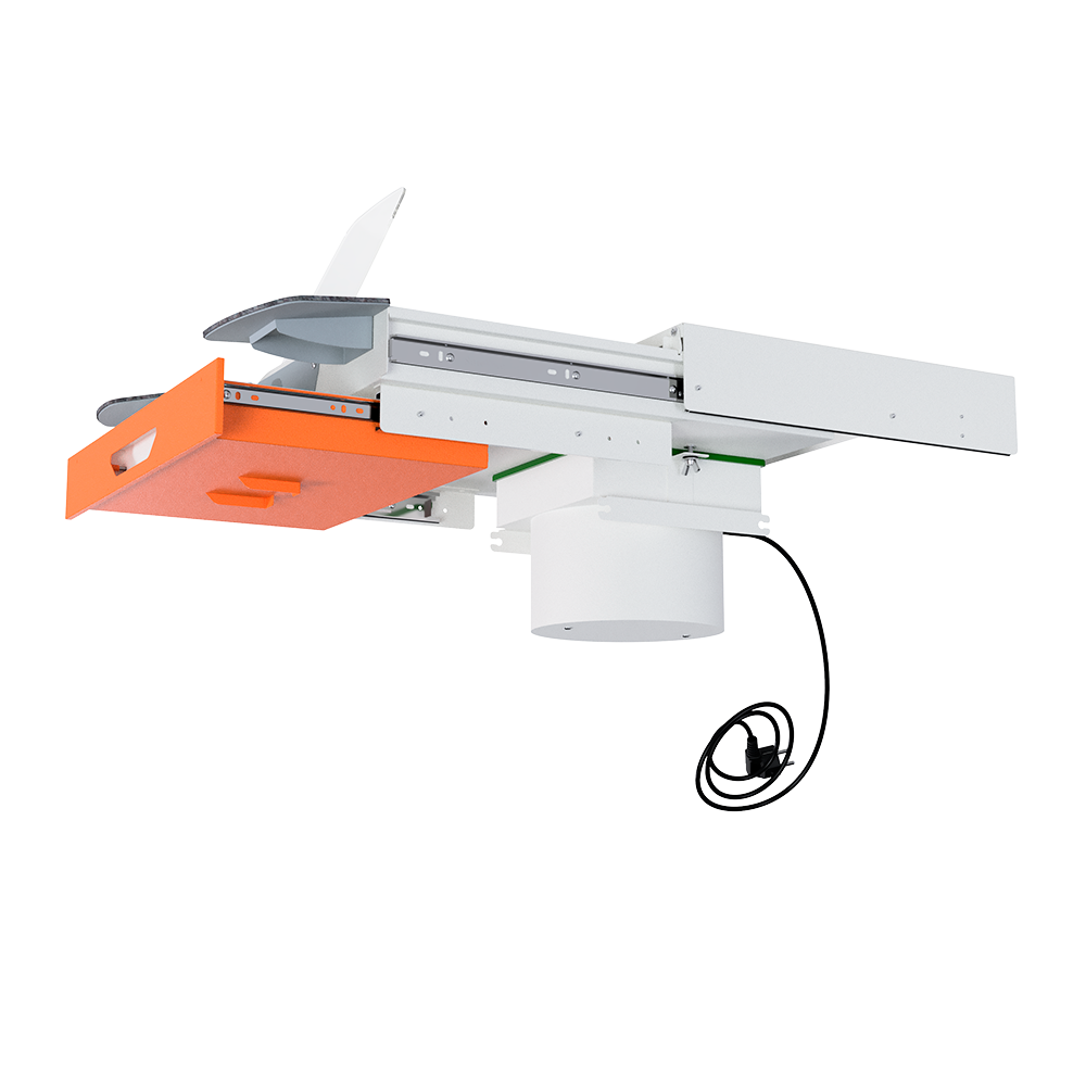 Встраиваемая вытяжная система с выдвижной столешницей и ящиком для сбора отходов